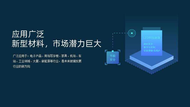 廣泛應用于:電子產品、商場寫字樓、家具、機場、車站、工業領域、大廈、新能源等行業,是未來玻璃發展行業的新方向